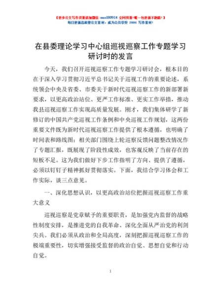 / 在县委理论学习中心组巡视巡察工作专题学习研讨时的发言