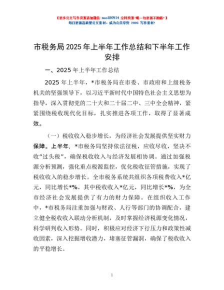 / 市税务局2025年上半年工作总结和下半年工作安排