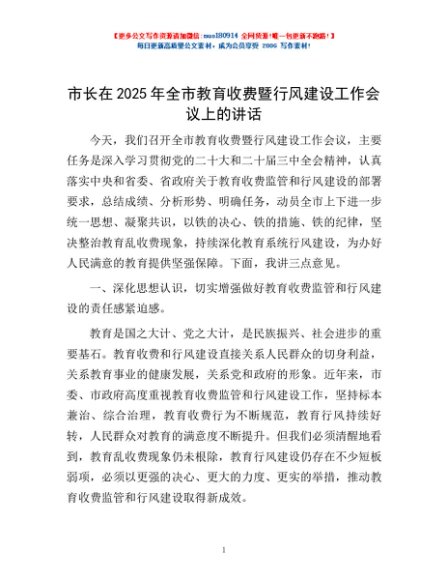 / 市长在2025年全市教育收费暨行风建设工作会议上的讲话
