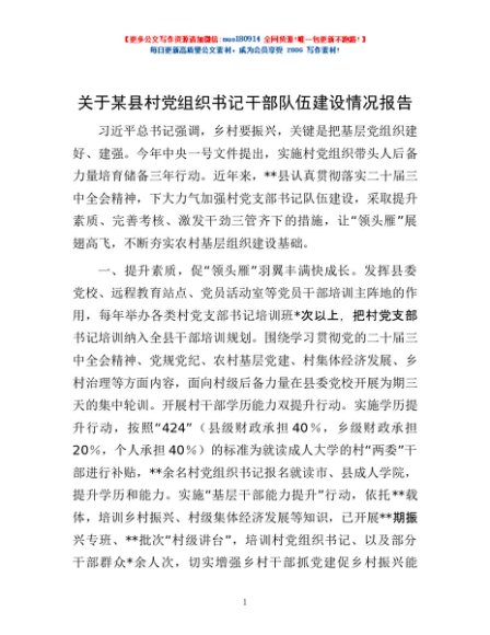 / 关于某县村党组织书记干部队伍建设情况报告