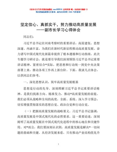 / 坚定信心、真抓实干,努力推动高质量发展——副市长学习心得体会
