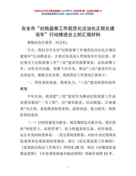 / 在全市“纪检监察工作规范化法治化正规化建设年”行动推进会上的汇报材料
