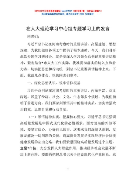 / 在人大理论学习中心组专题学习上的发言