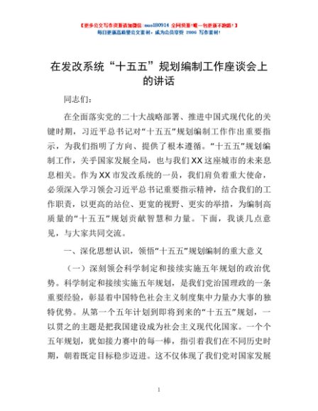 / 在发改系统“十五五”规划编制工作座谈会上的讲话