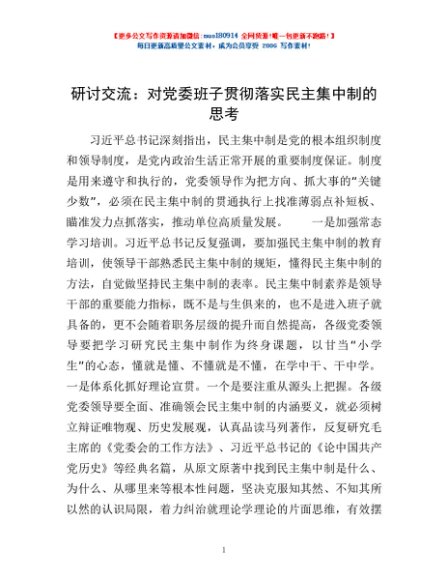 / 研讨交流:对党委班子贯彻落实民主集中制的思考