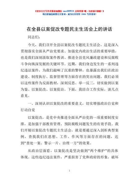 / 在全县以案促改专题民主生活会上的讲话