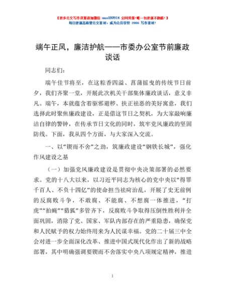/ 端午正风,廉洁护航——市委办公室节前廉政谈话