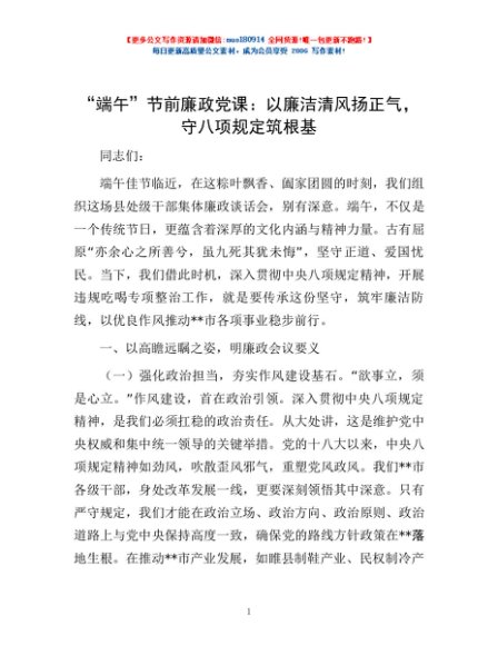 / “端午”节前廉政党课:以廉洁清风扬正气,守八项规定筑根基