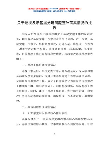 / 关于巡视反馈基层党建问题整改落实情况的报告