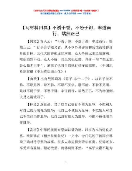 / 【写材料用典】不诱于誉,不恐于诽,率道而行,端然正己