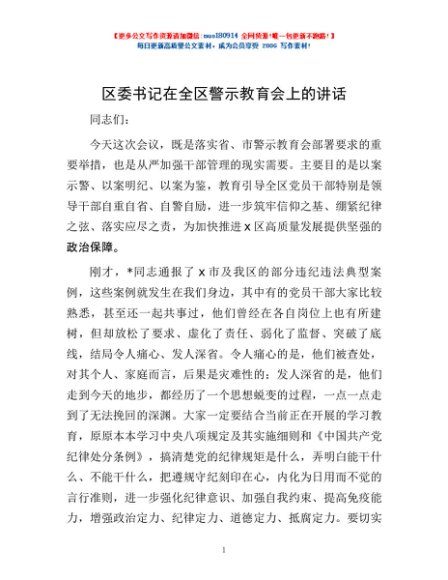 / 区委书记在全区警示教育会上的讲话