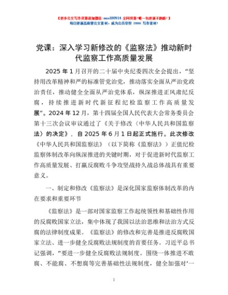/ 党课:深入学习新修改的《监察法》 推动新时代监察工作高质量发展