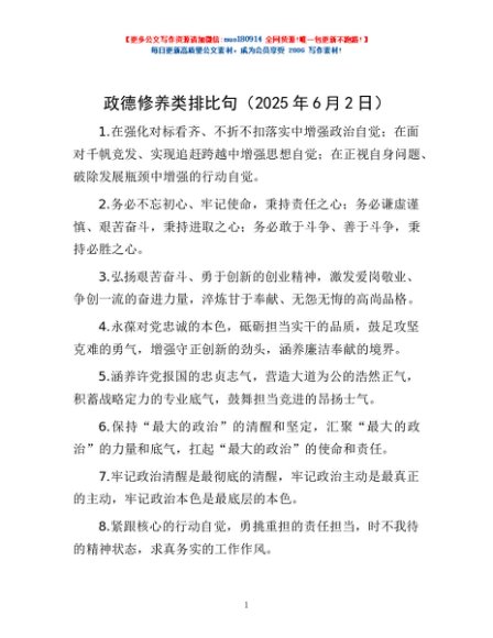/ 政德修养类排比句(2025年6月2日)