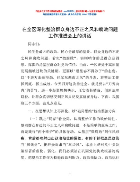 / 在全区深化整治群众身边不正之风和腐败问题工作推进会上的讲话