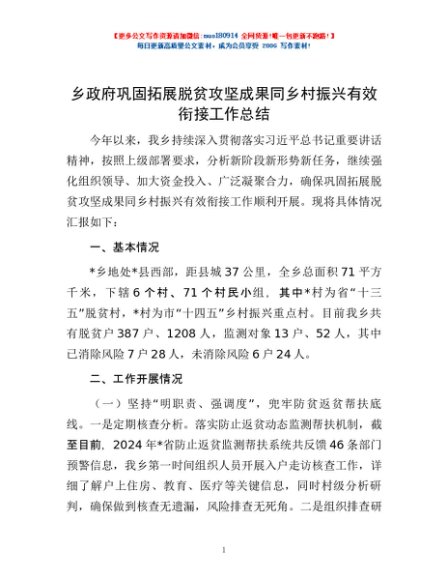 / 乡政府巩固拓展脱贫攻坚成果同乡村振兴有效衔接工作总结