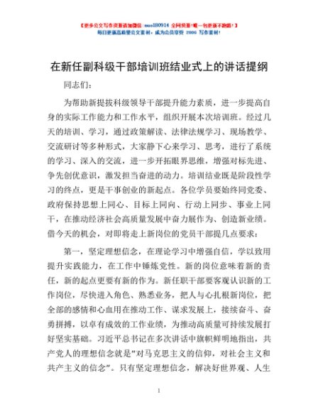 / 在新任副科级干部培训班结业式上的讲话提纲