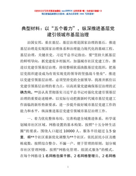 典型材料:以“五个着力”,纵深推进基层党建引领城市基层治理