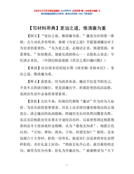 / 【写材料用典】吏治之道,惟清廉为重