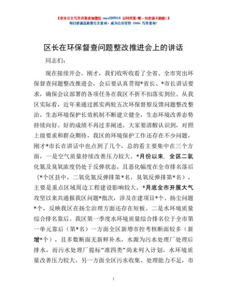 / 区长在环保督查问题整改推进会上的讲话