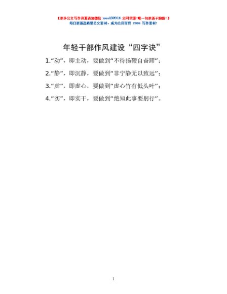 / 年轻干部作风建设“四字诀”