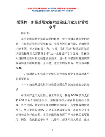 / 授课稿:加强基层党组织建设 提升党支部管理水平
