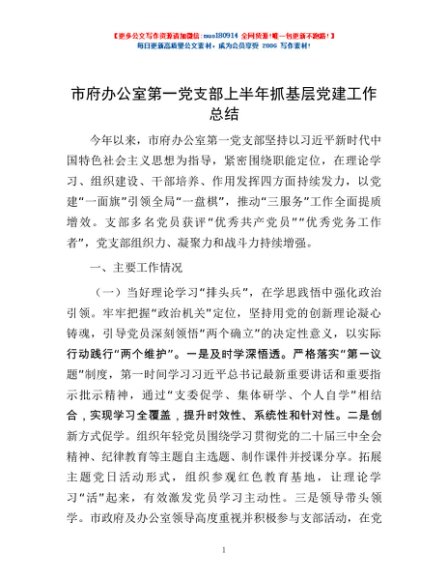 / 市府办公室第一党支部上半年抓基层党建工作总结