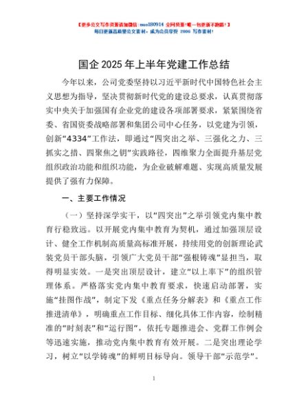 / 国企2025年上半年党建工作总结