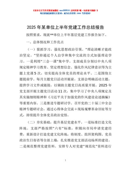 / 2025年某单位上半年党建工作总结报告