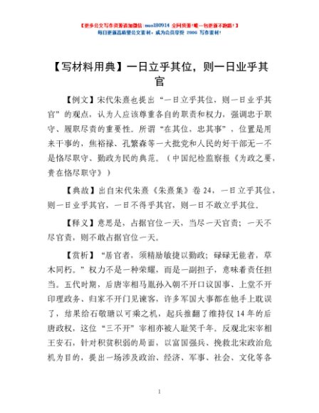 / 【写材料用典】一日立乎其位,则一日业乎其官