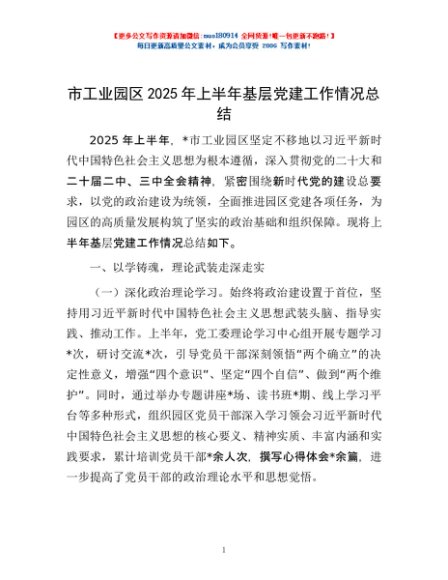 / 市工业园区2025年上半年基层党建工作情况总结