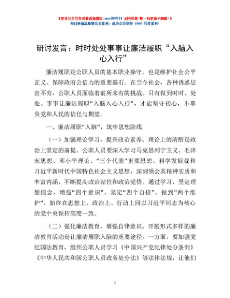 / 研讨发言:时时处处事事让廉洁履职“入脑入心入行”