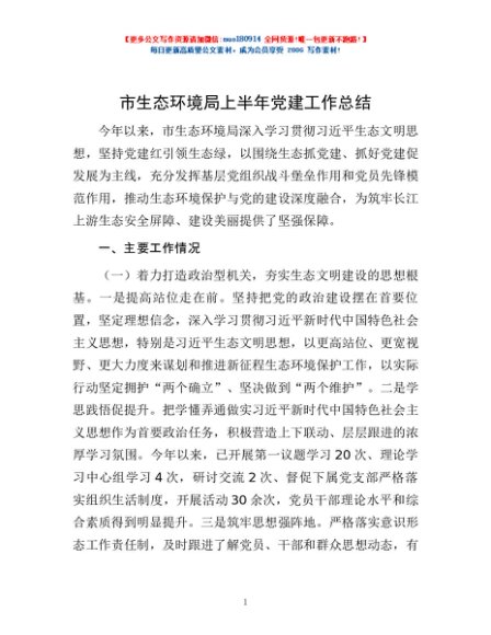 / 市生态环境局上半年党建工作总结