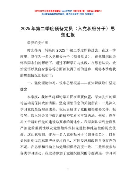 2025年第二季度预备党员(入党积极分子)思想汇报