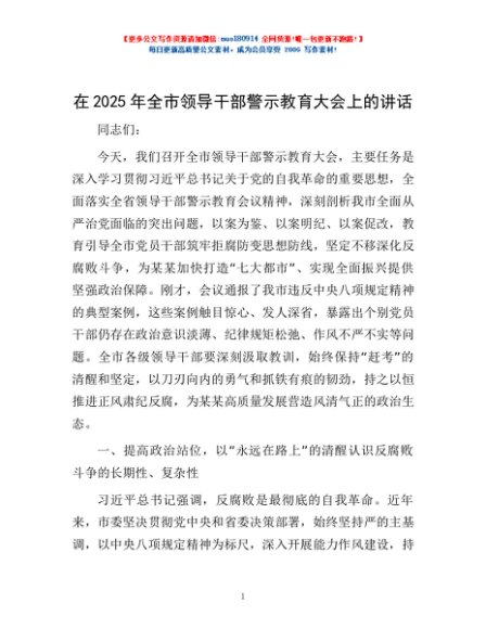 / 在2025年全市领导干部警示教育大会上的讲话