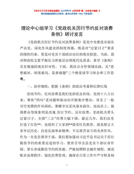 / 理论中心组学习《党政机关厉行节约反对浪费条例》研讨发言