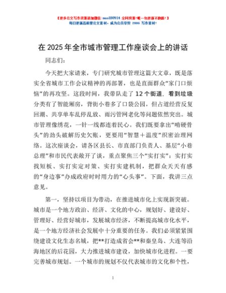 / 在2025年全市城市管理工作座谈会上的讲话