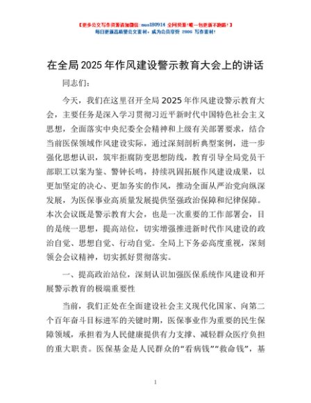 / 在全局2025年作风建设警示教育大会上的讲话