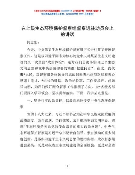 / 在上级生态环境保护督察组督察进驻动员会上的讲话