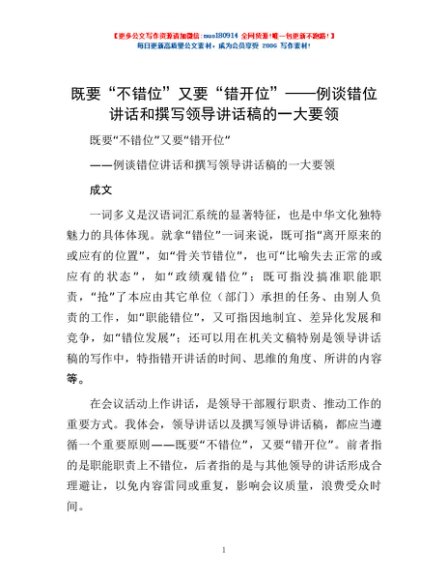 / 既要“不错位” 又要“错开位”——例谈错位讲话和撰写领导讲话稿的一大要领