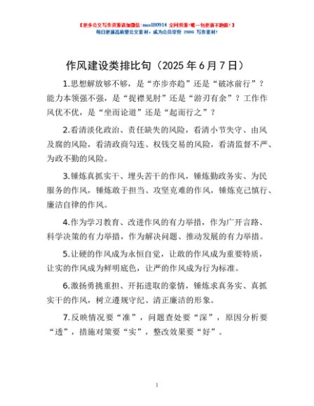 / 作风建设类 排比句(2025年6月7日)