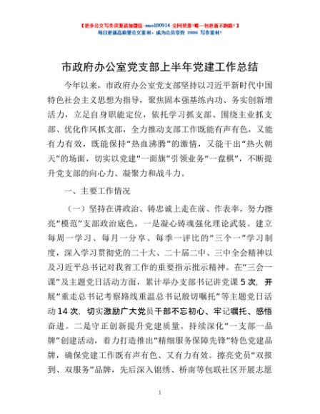 / 市政府办公室党支部上半年党建工作总结