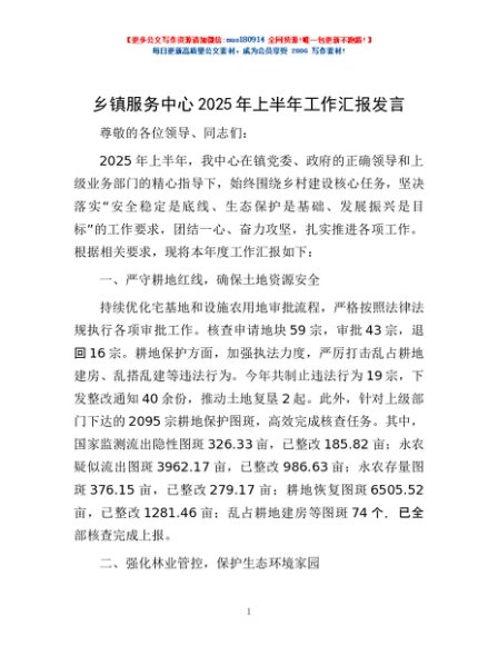 / 乡镇服务中心2025年上半年工作汇报发言