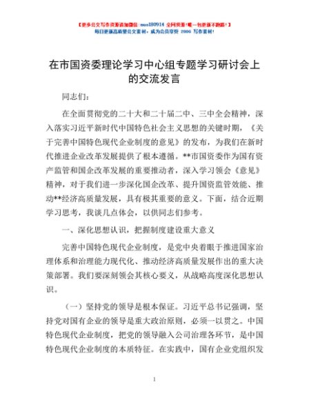 / 在市国资委理论学习中心组专题学习研讨会上的交流发言
