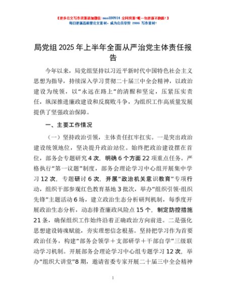 / 局党组2025年上半年全面从严治党主体责任报告
