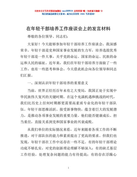 / 在年轻干部培养工作座谈会上的发言材料
