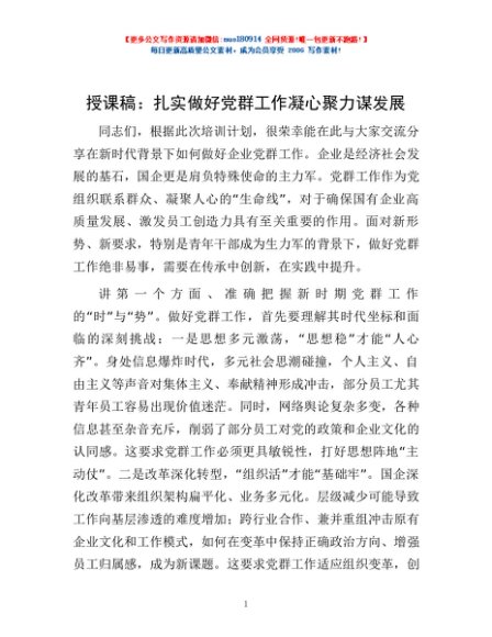 / 授课稿:扎实做好党群工作 凝心聚力谋发展