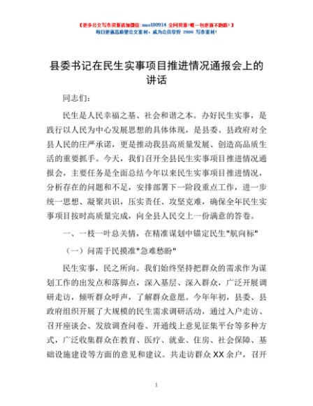 / 县委书记在民生实事项目推进情况通报会上的讲话