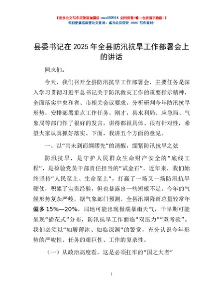 / 县委书记在 2025 年全县防汛抗旱工作部署会上的讲话