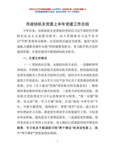 / 市政协机关党委上半年党建工作总结