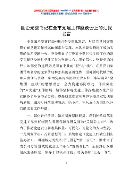 / 国企党委书记在全市党建工作座谈会上的汇报发言